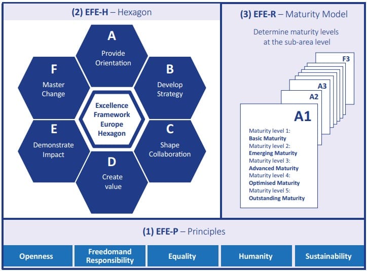 The Excellence Framework Europe takes a holistic view of outstanding organizations – in their actions, their impact and their results. Excellence is not only reflected in success or in the perception of stakeholders, but above all in the consistent adherence to common principles and values.