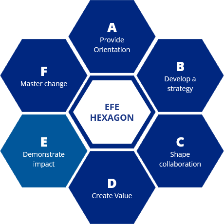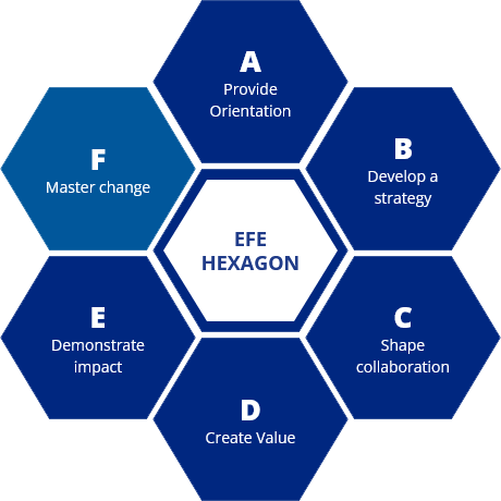 The EFE hexagon is divided into six interconnected areas that influence each other and “pulse” in a coordinated rhythm.